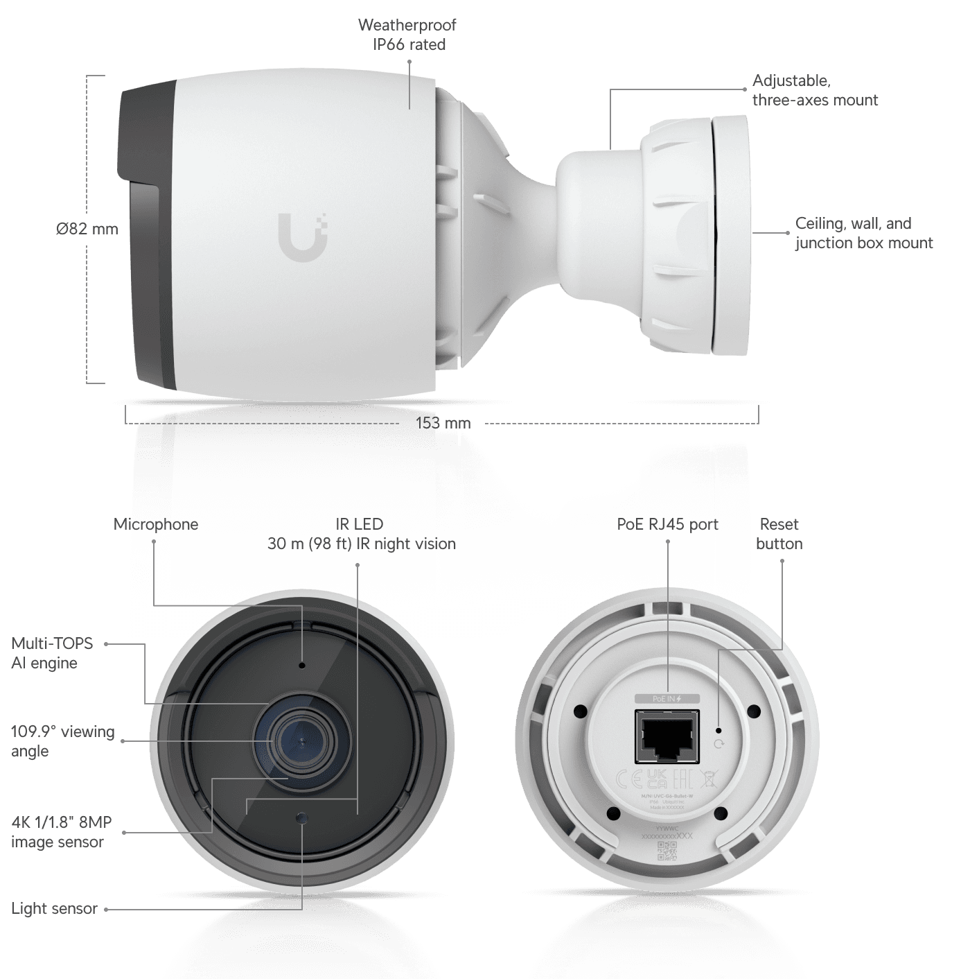 מצלמת Bullet 4K לבנה, עמידה, חיישן 8MP, מנוע AI ו־IR ארוך טווח.