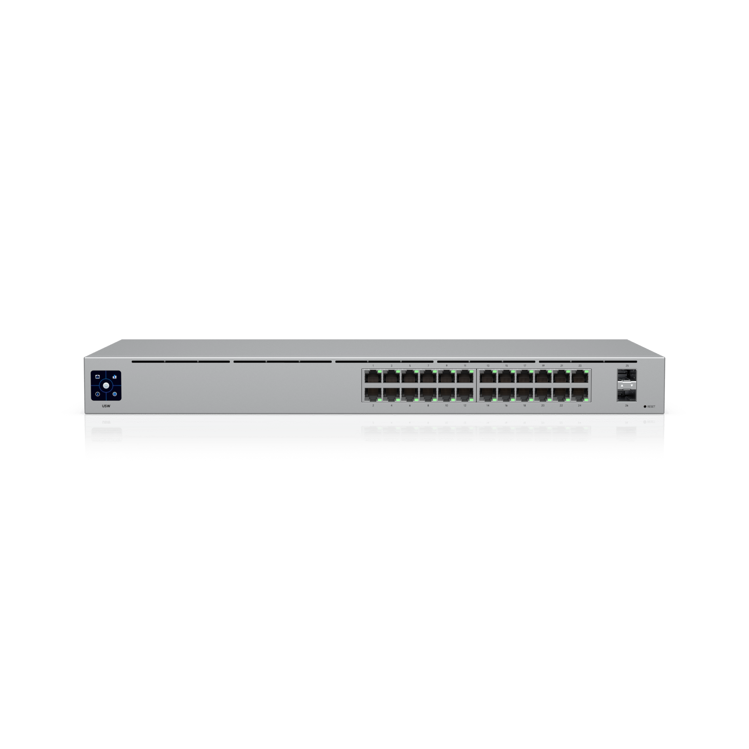 מתג 24 פורטים, שכבה 2, עם מערכת קירור שקטה ללא מאוורר.